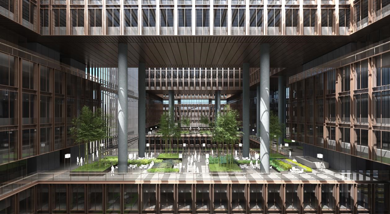 80米高的挑空大廳、7個(gè)采光中庭,使亞洲金融大廈內(nèi)所有工作區(qū)能享受最為均衡的自然采光和開(kāi)闊視野空間;10處空中花園,分別種植熱帶、亞熱帶植物等,營(yíng)造兼具藝術(shù)性和實(shí)用性的綠色多元復(fù)合活力商務(wù)空間;雙層內(nèi)呼吸式玻璃幕墻,配合智能電動(dòng)遮陽(yáng)系統(tǒng)和通風(fēng)換氣系統(tǒng)等,在實(shí)現(xiàn)節(jié)能效果、提升隔聲性能的同時(shí),保障恒溫恒濕的辦公條件。